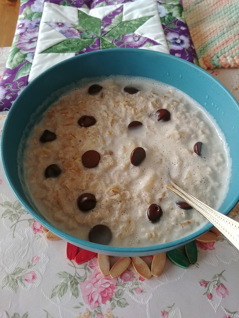 Top with dark chocolate morsels and enjoy!