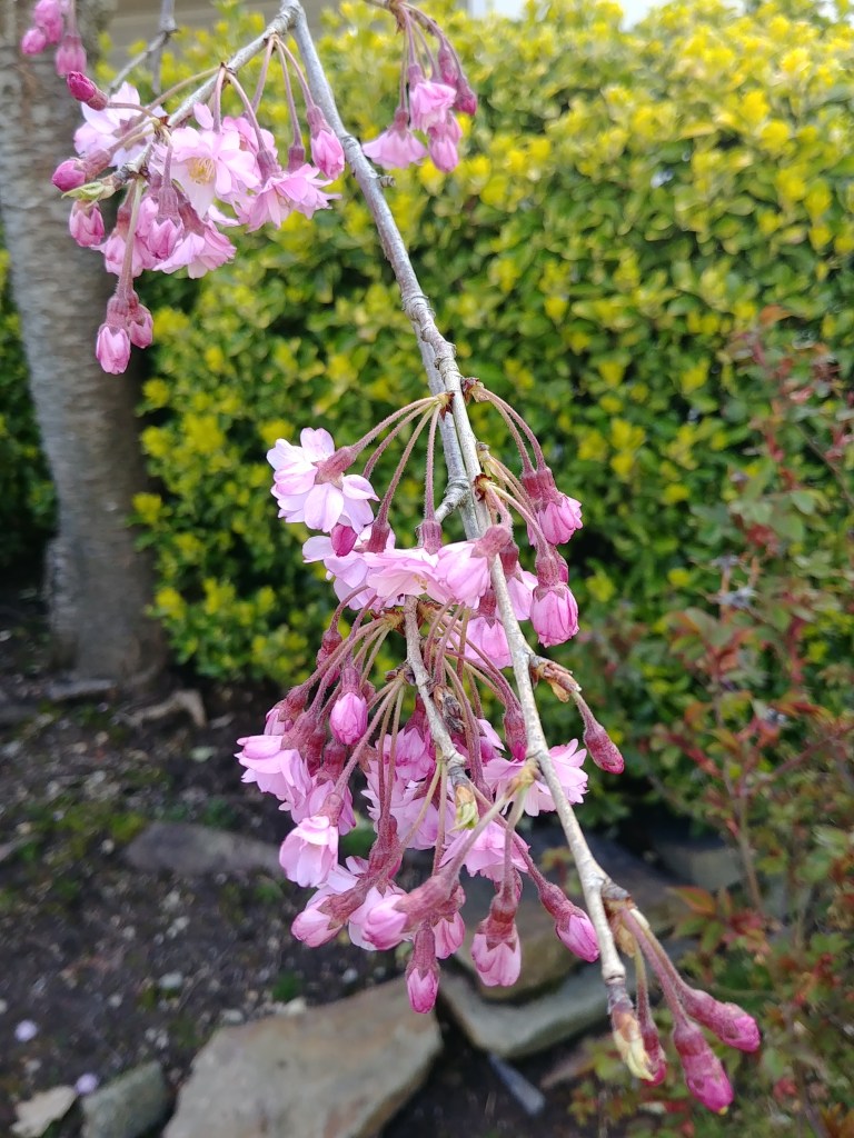 I think April is such a pretty month. I have a special tree outside my bedroom window that always takes my breath away. I’m pretty sure it is a Pink Weeping Cherry Tree. After being barren during the long, dark days of winter, this lovely tree begins to turn pink for what seems to never be enough days in April. I love to sit by my window and appreciate all the color my Heavenly Father is allowing me to enjoy. It’s a treasure to pray, think, read and write as I look at all those drooping branches filled with wonder. What a gift for the eyes. I notice how the tree starts with dark pink buds and then blooms to dark pink flowers. With every day that passes, the flowers lose their pink color and turn lighter in color. It looks whiter and then eventually will turn to all green leaves. My heart wishes for those pink flowers to always stay. I want them to last. When they fade away, they delicately fall on my grass and flowers below giving them a look of being covered with pink snow. How lovely.